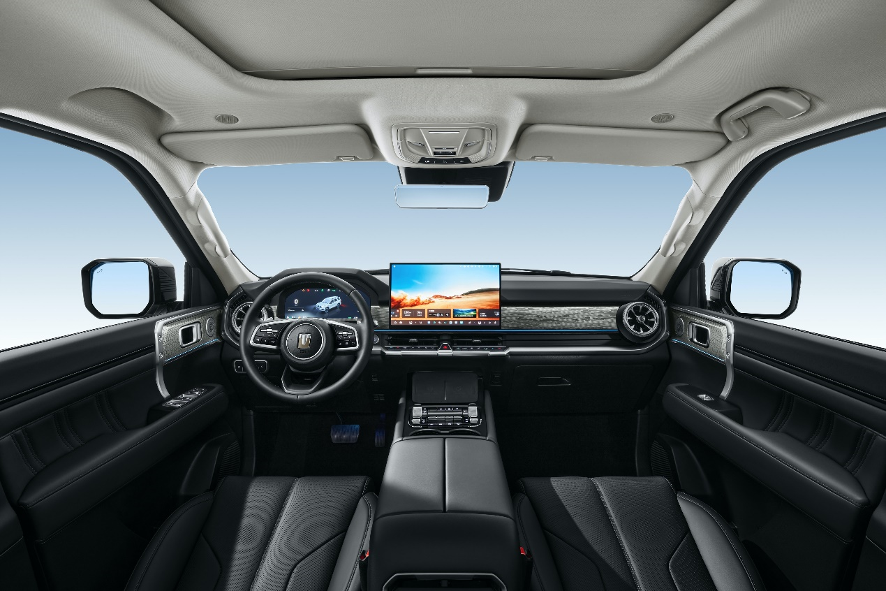 全新坦克400还配备科技五屏,由12.3英寸仪表屏、15.6英寸中控巨幕、高清HUD抬头显示、超清高亮夜视流媒体后视镜和15.6英寸后排吸顶娱乐屏组成,能实现协同工作、无缝流转,前排驾驶专注于行车信息、后排家人畅享影音娱乐内容,让全家乐享科技出行的乐趣。