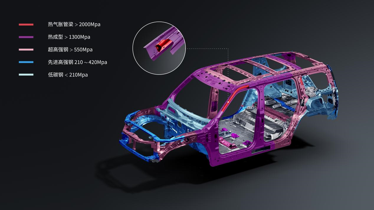 全维防碰撞系统CAS 4.0支持4-150km/h全时速刹停避障,遇到行人横穿、邻车加塞等突发情况时,系统会自动紧急制动,提前规避风险。83.2%占比的高强度钢、结构总长度达到12.48m的2000MPa热成型材料、2000MPa A柱内嵌热气胀管梁结构设计等,能在碰撞时最大程度保护座舱完整,给家人实打实的硬核防护。